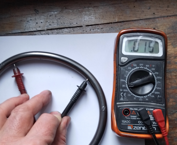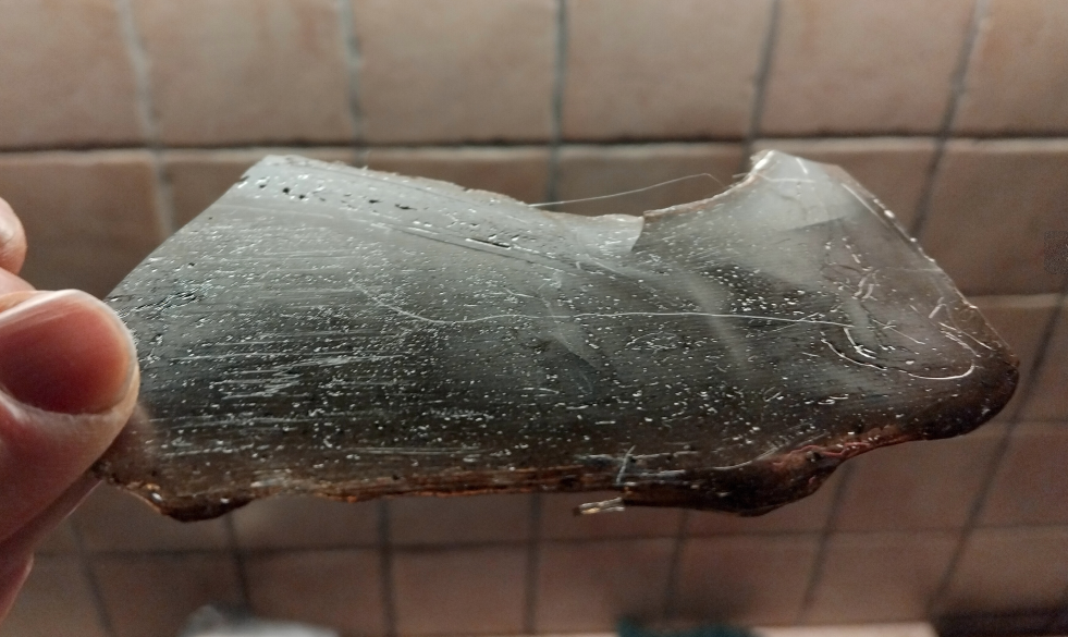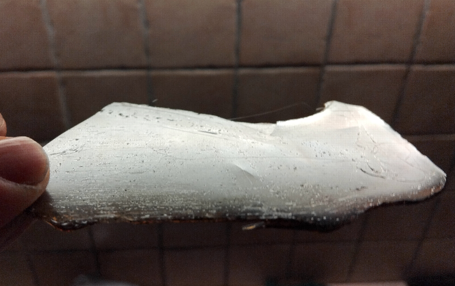 26/01/26 : J’ai pris des bouteilles de laits en PET que j’ai fait fondre dans une gamelle. Cela crée de la fumée à cause de la dégradation d’une partie de PET liée à présence d’eau dans le matériau. Néanmoins il est resté un peu de PET fondu. J’ai déposé du PET fondu sur un plaque de cuivre préalablement recouverte de GREX. Après refroidissement, le PET se décolle facilement. Comme on pouvait s’y attendre la face en contact avec le dépôt de GREX est recouverte de graphite mais n’est pas conductrice. Il suffit d’étaler un peu de Grex pour qu’elle devienne conductrice.